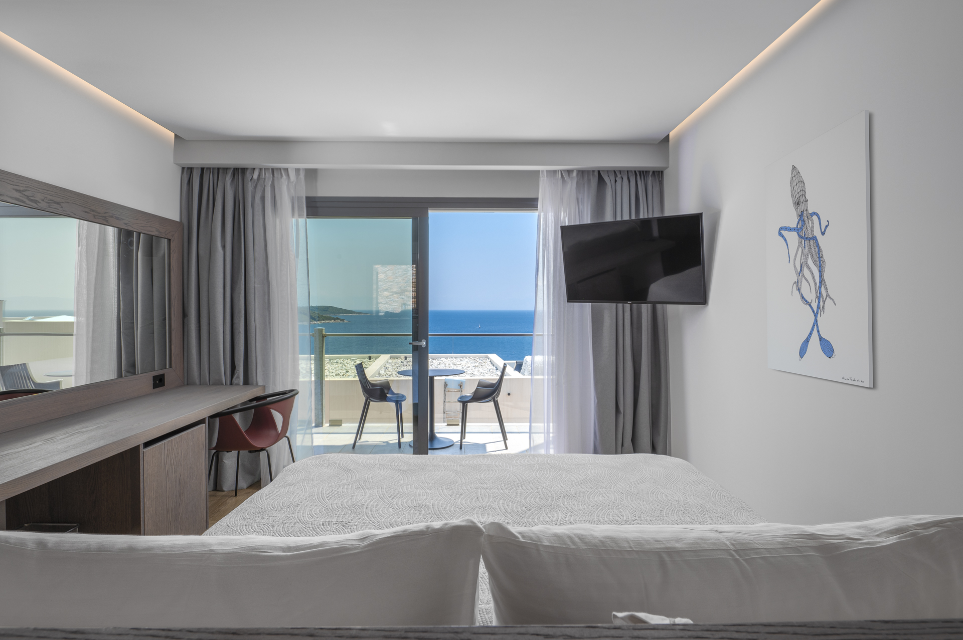 ΔΙΚΛΙΝΟ ΔΩΜΑΤΙΟ ΜΕ ΘΕΑ ΣΤΗ ΘΑΛΑΣΣΑ ΥΠΕΡΥΨΩΜΕΝΟ ΙΣΟΓΕΙΟ