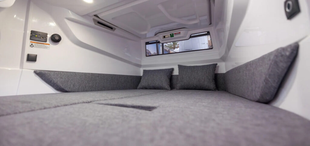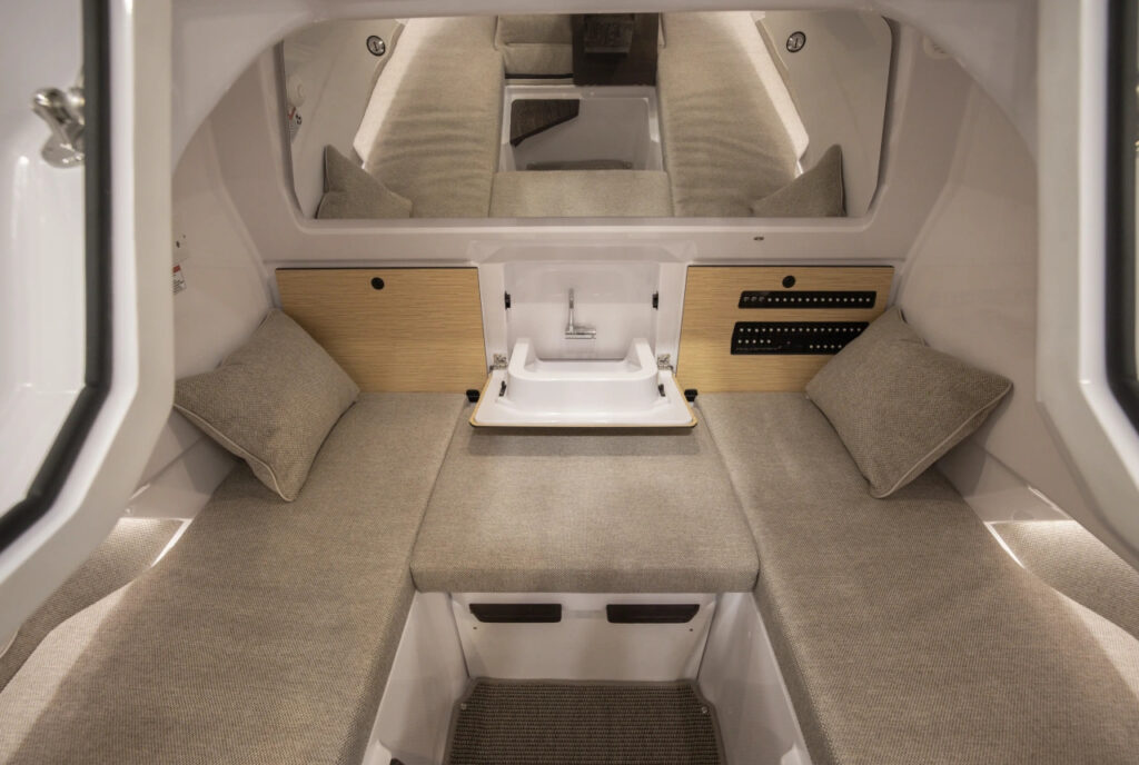 - Cabin – Toilet: The multi cabin as standard functions as a large under-deck storage area for gear and luggage, to which you can find fresh water, a toilet and a sink.